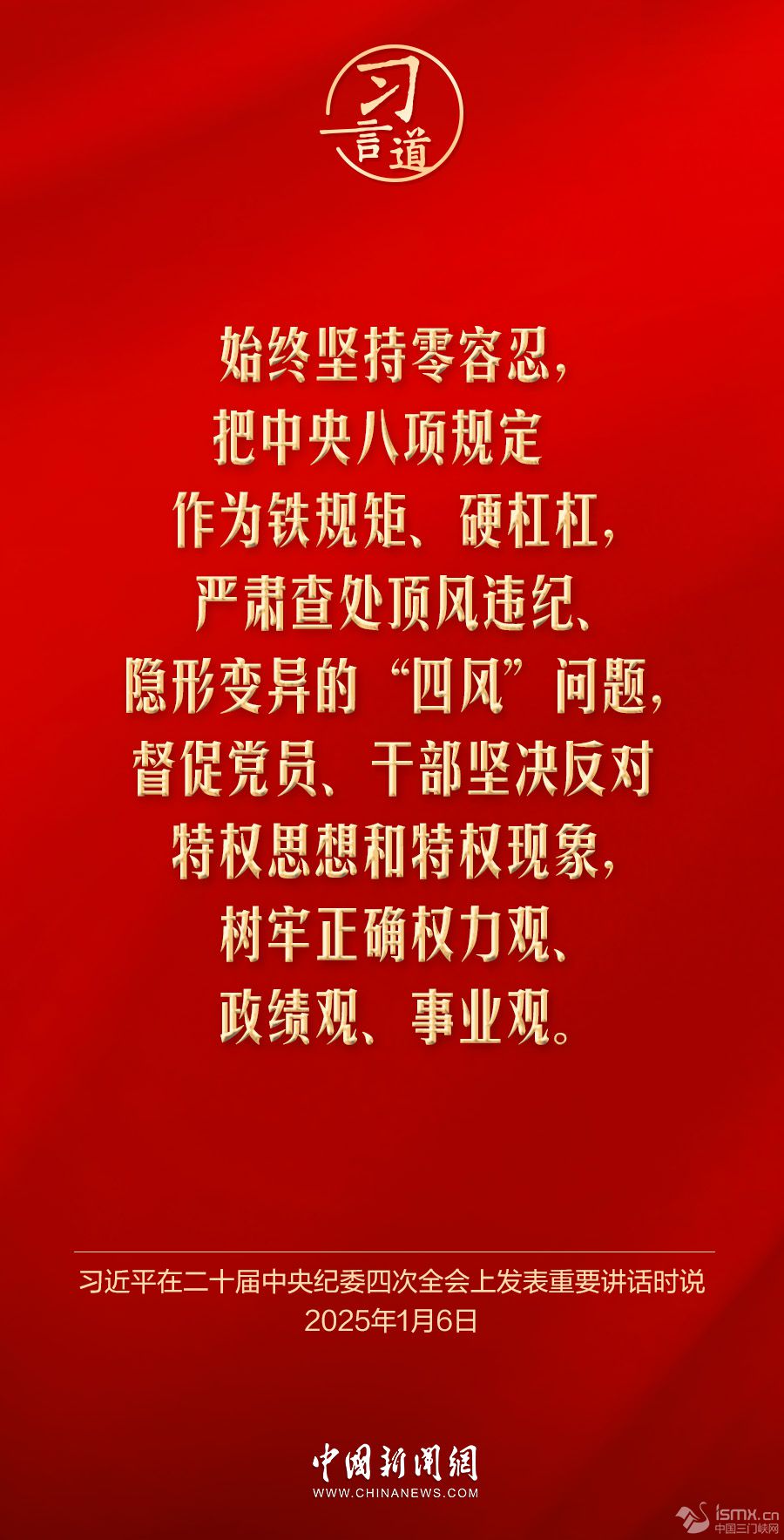 黨中央決定,自2025年全國(guó)兩會(huì)后至7月在全黨開(kāi)展深入貫徹中央八項(xiàng)規(guī)定精神學(xué)習(xí)教育。黨的作風(fēng)就是黨的形象,關(guān)系人心向背,決定黨和國(guó)家事業(yè)成敗。習(xí)近平總書(shū)記高度重視作風(fēng)建設(shè),就貫徹落實(shí)中央八項(xiàng)規(guī)定精神、深化作風(fēng)建設(shè)作出一系列重要論述——