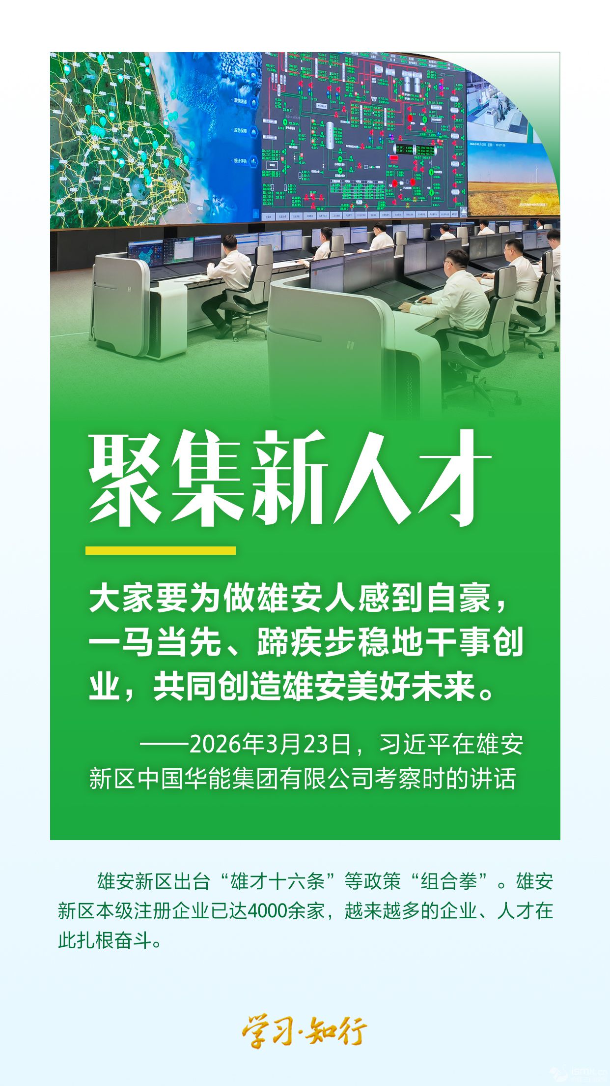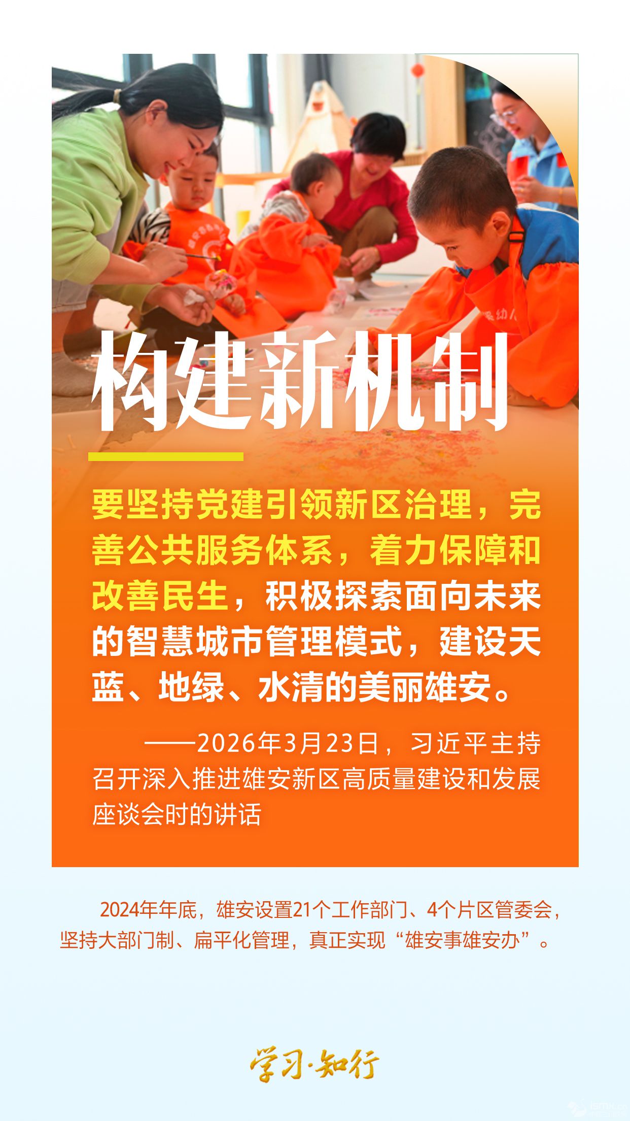 2026年3月23日,習(xí)近平總書(shū)記在河北雄安新區(qū)考察,主持召開(kāi)深入推進(jìn)雄安新區(qū)高質(zhì)量建設(shè)和發(fā)展座談會(huì),強(qiáng)調(diào)牢牢把握雄安新區(qū)功能定位,努力建設(shè)新時(shí)代創(chuàng)新高地和推動(dòng)高質(zhì)量發(fā)展樣板。 千年大計(jì),只爭(zhēng)朝夕。如今的雄安新區(qū),正以看得見(jiàn)的“新”,錨定目標(biāo),闊步前行。