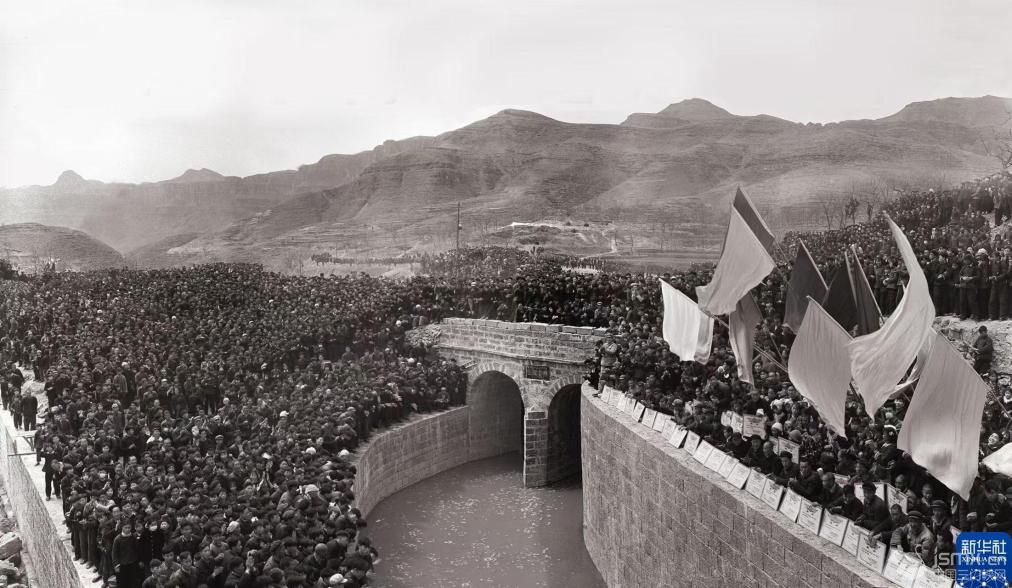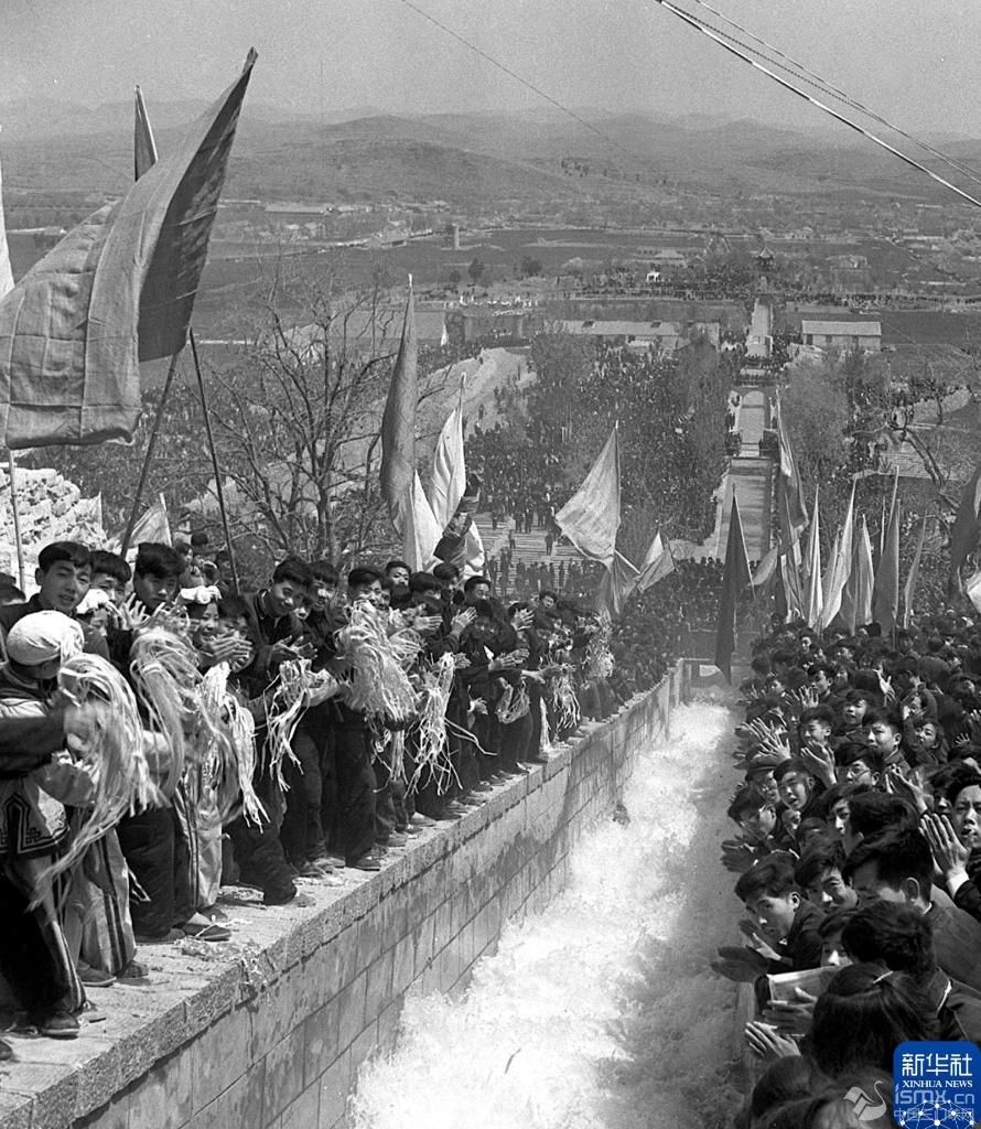 人們舉行盛大集會,慶祝紅旗渠竣工通水(資料照片)。新華社發(fā)