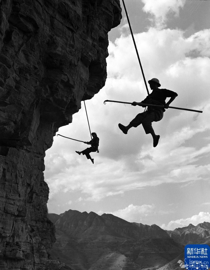 人們在紅旗渠施工現(xiàn)場凌空除險(資料照片)。新華社發(fā)