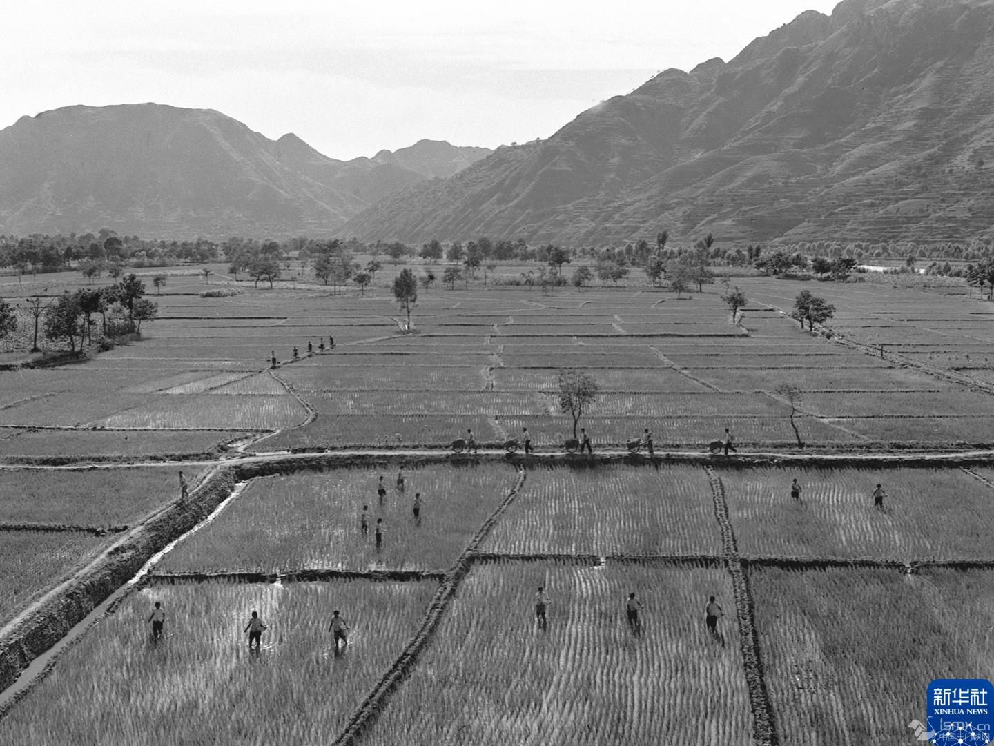 從紅旗渠引來漳河水,使旱地變成水稻田(資料照片)。新華社發(fā)