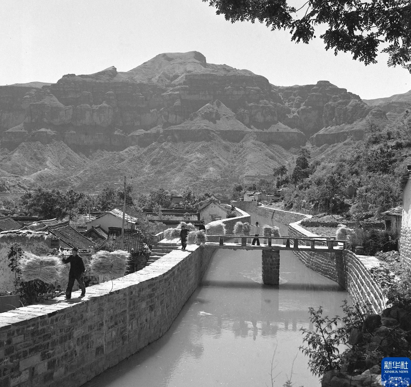 紅旗渠水流過村莊,人們再也不用翻山越嶺,跑到幾里、甚至幾十里外去擔(dān)水了(資料照片)。新華社發(fā)