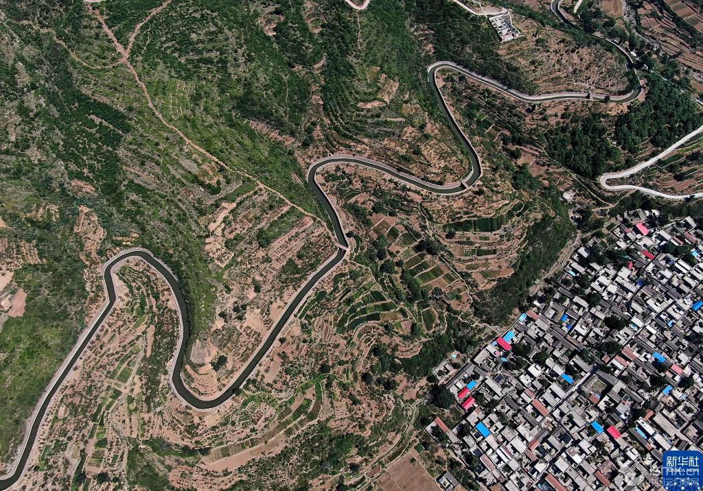 紅旗渠總干渠從一座村莊旁繞過(2019年7月5日攝)。新華社記者 李安 攝