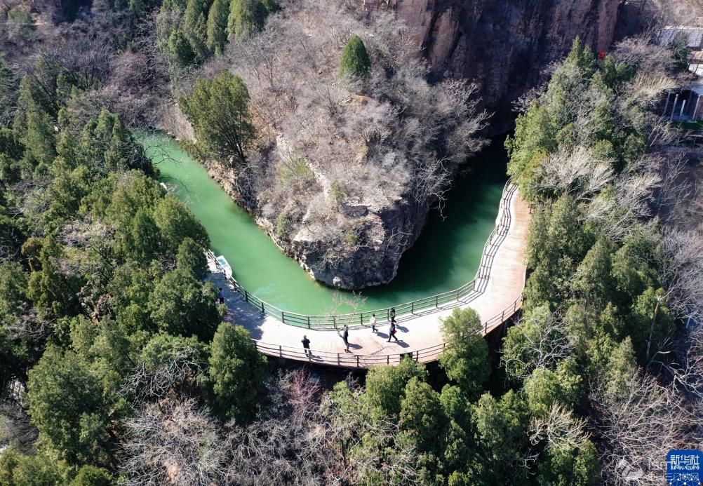游客在紅旗渠畔參觀(2025年3月18日攝)。新華社記者 李嘉南 攝