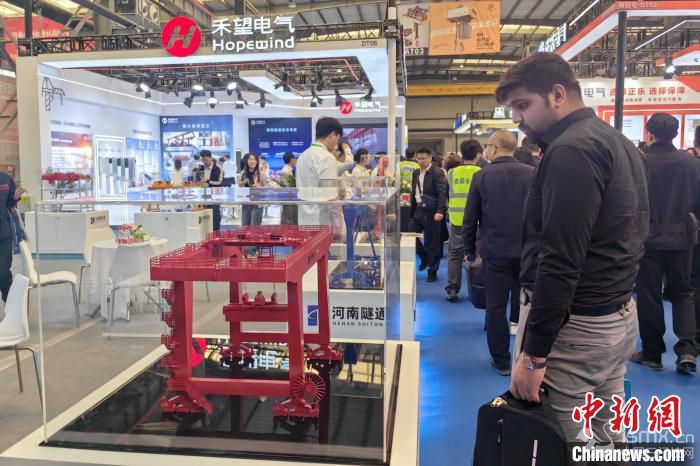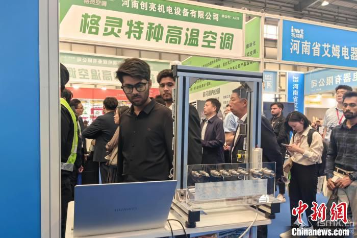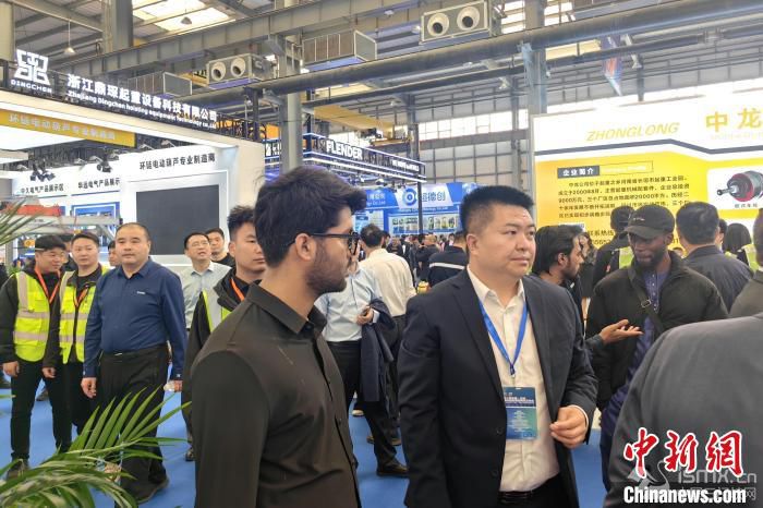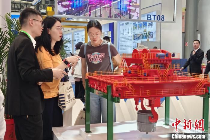 圖為外籍參會(huì)人員在展廳了解產(chǎn)品信息。中新社記者 劉鵬 攝