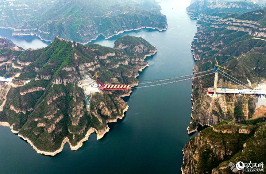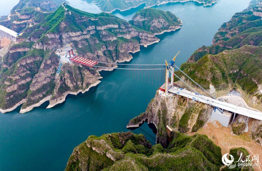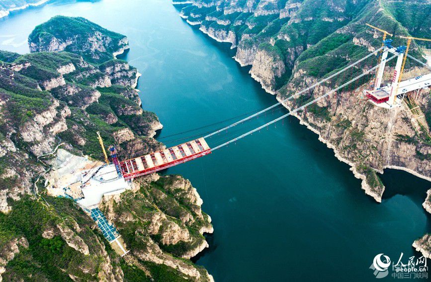 4月24日,河南省濟源至新安高速公路項目的重要控制性工程——濟新黃河大橋施工現(xiàn)場,工人正在緊張架設(shè)鋼桁梁。大橋計劃6月底鋼梁合龍,2025年底建成通車。 濟新黃河大橋是世界首創(chuàng)的獨塔地錨式回轉(zhuǎn)纜懸索橋,也是世界上跨徑最大的回轉(zhuǎn)纜懸索橋,塔高109米,跨度555米。同常規(guī)懸索橋相比,大橋僅一座主塔和一根長1613米的主纜支撐整個橋體,在黃河北岸經(jīng)過水平轉(zhuǎn)向索鞍錨固,實現(xiàn)180度回轉(zhuǎn)后,再繞過主塔塔頂,最后兩端同時錨固在黃河南岸的錨碇上。 這種設(shè)計方案契合了兩岸地形,實現(xiàn)了對周邊環(huán)境破壞的最小化、對兩岸崖壁地質(zhì)遺跡保護的最大化,體現(xiàn)了“源于環(huán)保、始于錨碇、樞于主纜、終于橋型”的設(shè)計、建造理念。 這一高速公路項目通車后,黃河兩岸路程可從兩小時縮短到二十分鐘,極大方便群眾出行。項目與新伊、菏寶、連霍等高速公路相連,進一步完善河南省高速公路網(wǎng)絡(luò),對增強鄭州都市圈、洛陽副中心城市輻射能力、整合區(qū)域旅游資源、拉動黃河兩岸經(jīng)濟發(fā)展、推動黃河流域生態(tài)保護具有重要意義。