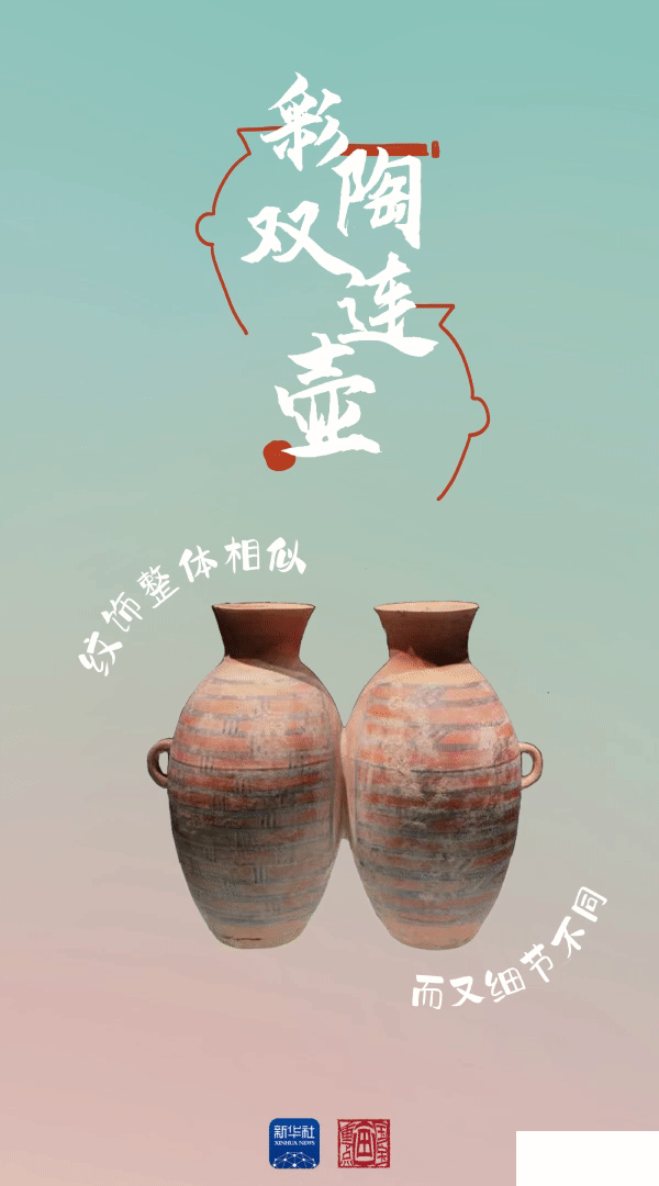 這件彩陶雙連壺 是大河村遺址的“明星文物” 兩壺并列,內部相通 壺體表面裝飾有紅衣黑彩 紋飾整體相似而又細節(jié)不同 專家研究認為 它是和平、友好、相敬、相親的象征