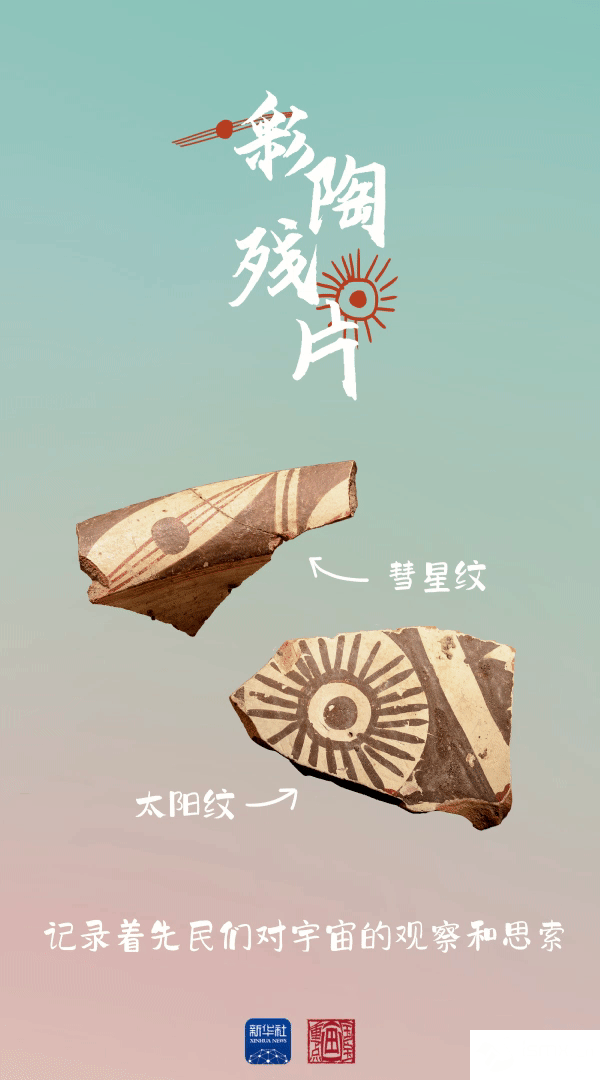 大河村遺址出土的彩陶上 發(fā)現(xiàn)有太陽紋、彗星紋等圖案 表明先民們已開始“仰望星空” 觀察與總結 太陽等星體的運行變化規(guī)律
