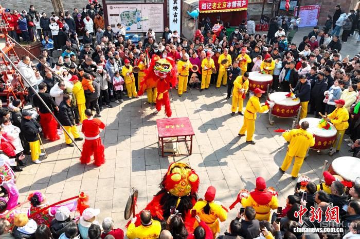 2月17日,農(nóng)歷正月初一,被譽為“微短劇之村”河南登封袁橋古村吸引眾多游客前來打卡體驗。據(jù)了解,自2024年以來,已有超過50部微短劇在此取景拍攝。圖為民俗表演吸引游客圍觀。 劉楊迪 攝